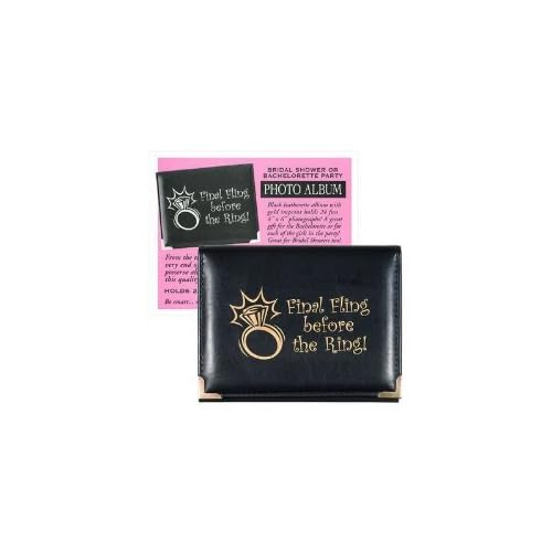 Black leatherette with gold imprint. Holds 24 4" x 6" photos. From the time the limo arrives to the very end of her fun-filled evening... preserve all of the fun memories with this quality photo album! Black Leatherette album with gold imprint holds 24 fun 4x6 photographs! A great gift for the Bachelorette or for each of the girls in the party! Great for bridal showers too!